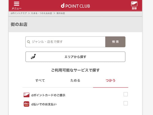 d ポイントの場合 d ポイントクラブお店ごとに詳細ページが存在します。